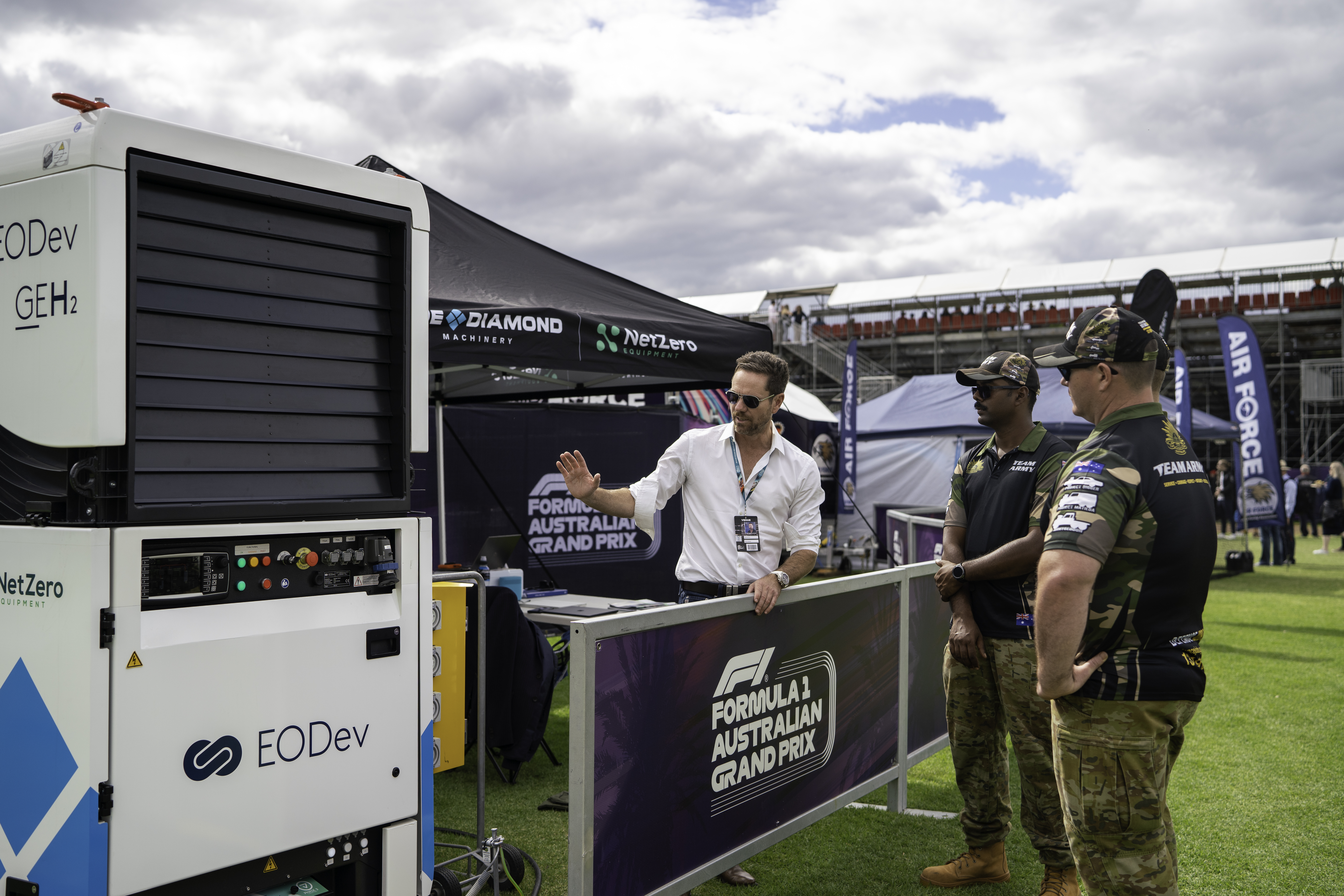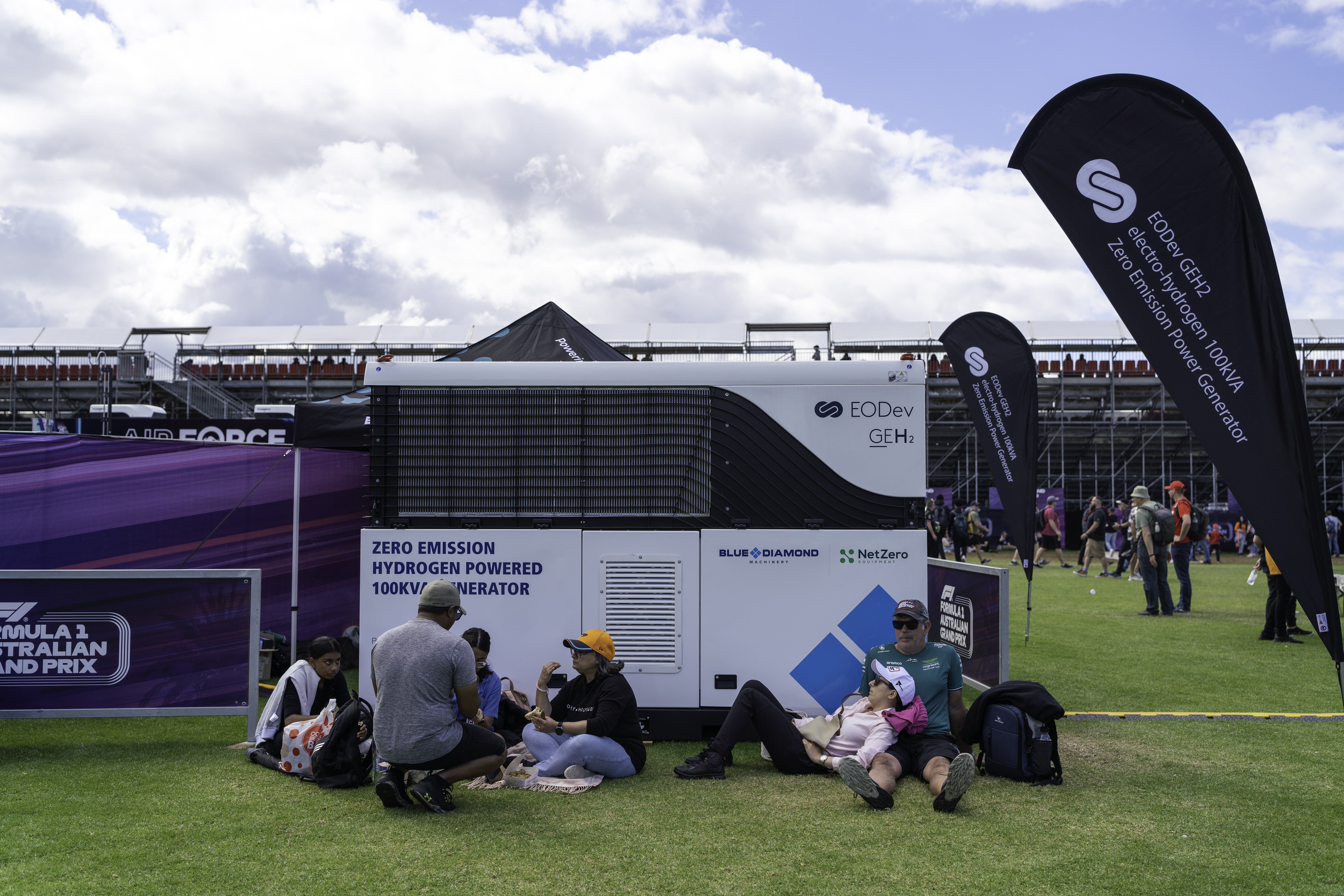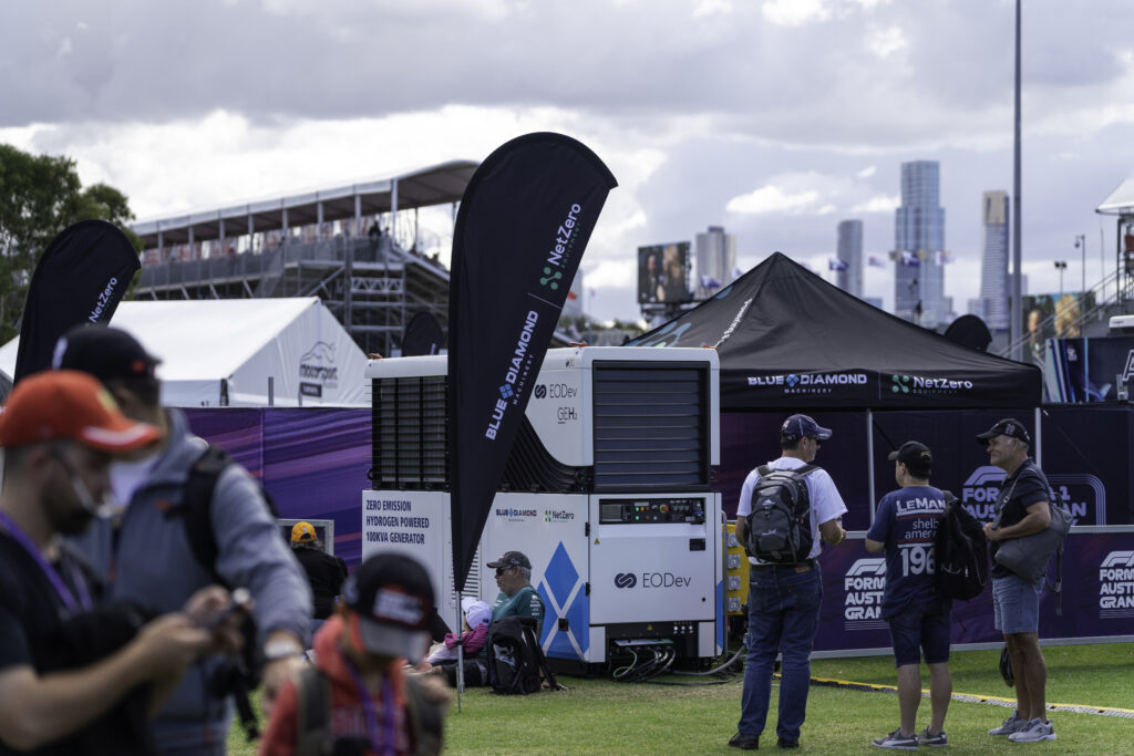 The Australian Grand Prix provided Blue Diamond Machinery with a unique opportunity to showcase the benefits of the GEH2®. Using only electro-hydrogen fuel cell technology, the GEH2® is a low emission solution offering significant noise reduction and instant start-up – making it a perfect solution for major sporting events. Â