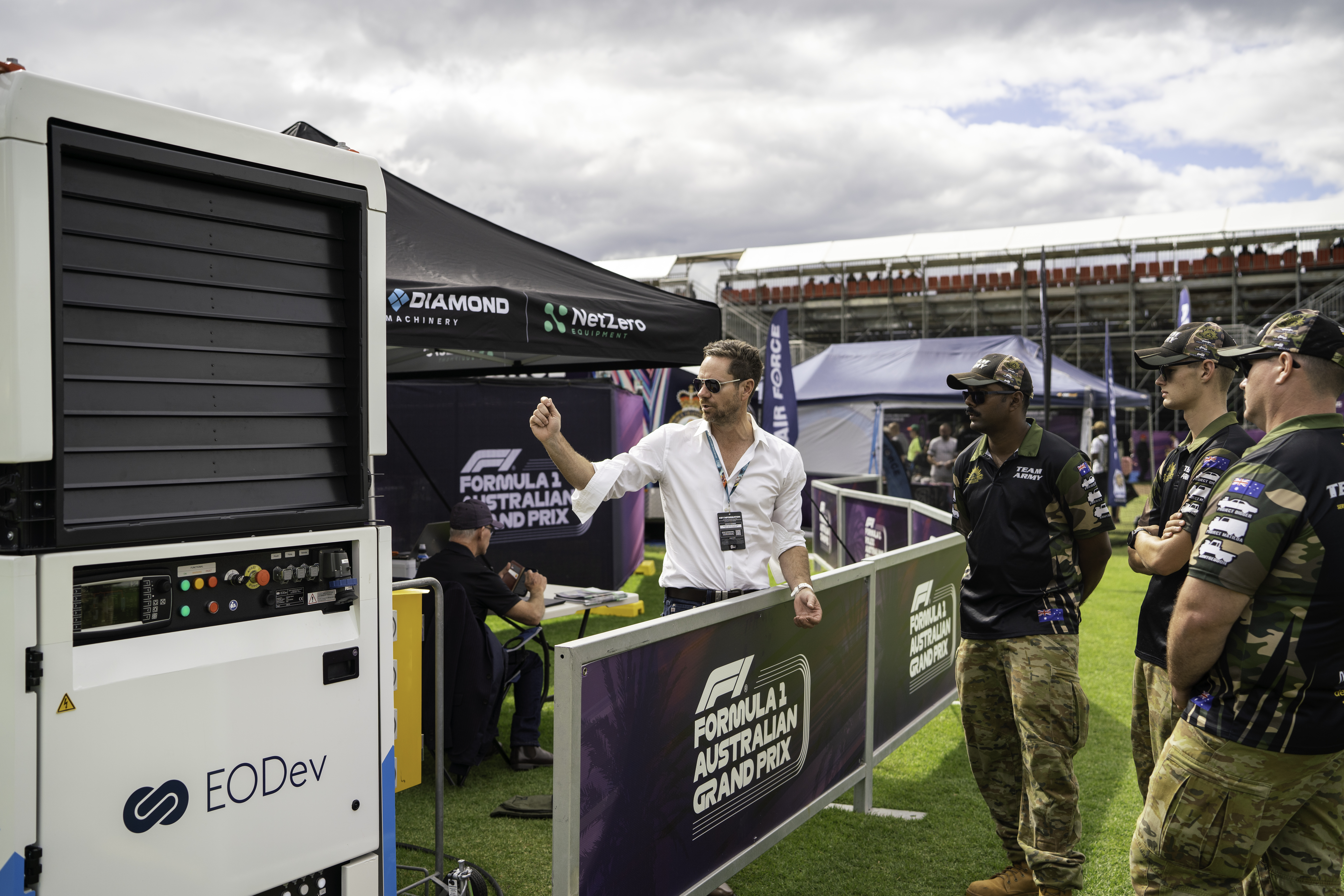 The Australian Grand Prix provided Blue Diamond Machinery with a unique opportunity to showcase the benefits of the GEH2®. Using only electro-hydrogen fuel cell technology, the GEH2® is a low emission solution offering significant noise reduction and instant start-up – making it a perfect solution for major sporting events. Â