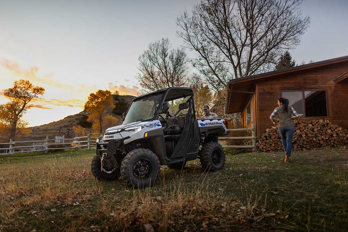 The Polaris Ranger XP Kinetic Premium features a single li-ion battery with up to 70km of range. The Polaris XP Kinetic Ultimate features dual li-ion batteries with up to 130km of range.